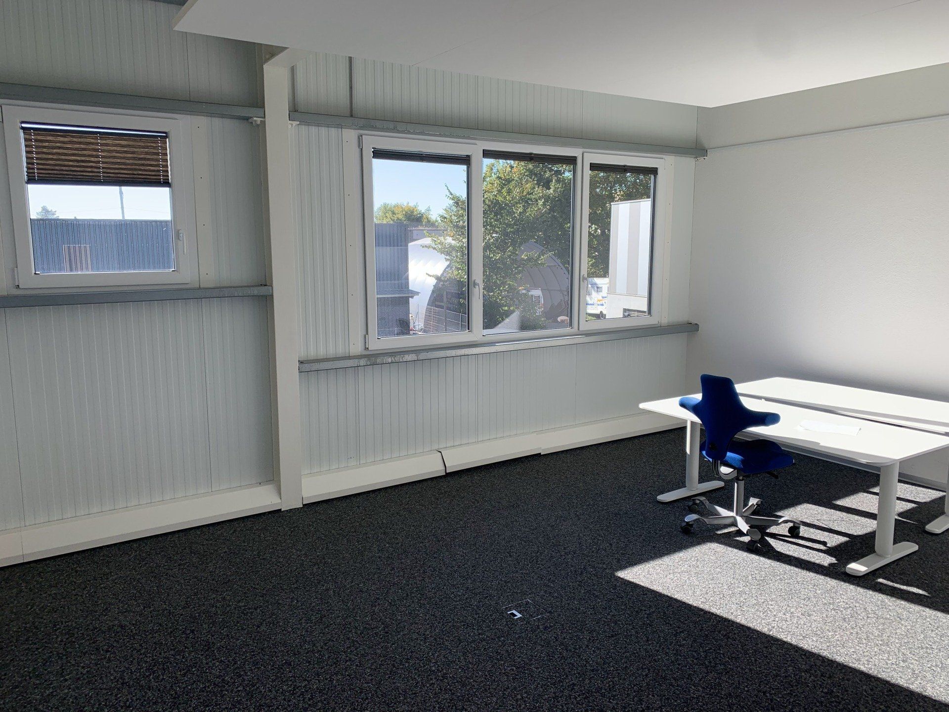 Ein nach Westen ausgerichteter heller Raum einem grossen Fenster und elektrisch gesteuerten Lamellenstoren.